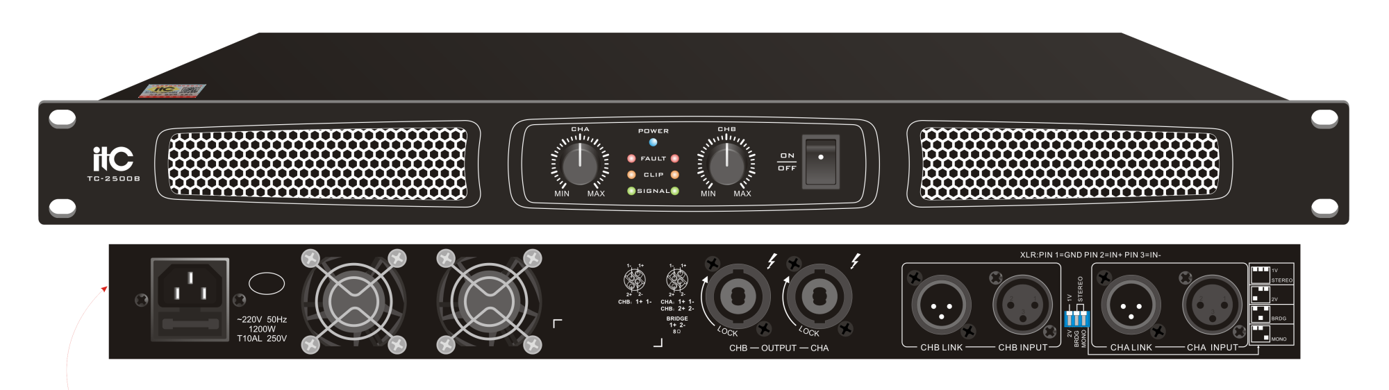 2-канальный усилитель, 2х500W / 8 Ом ITC-2500B