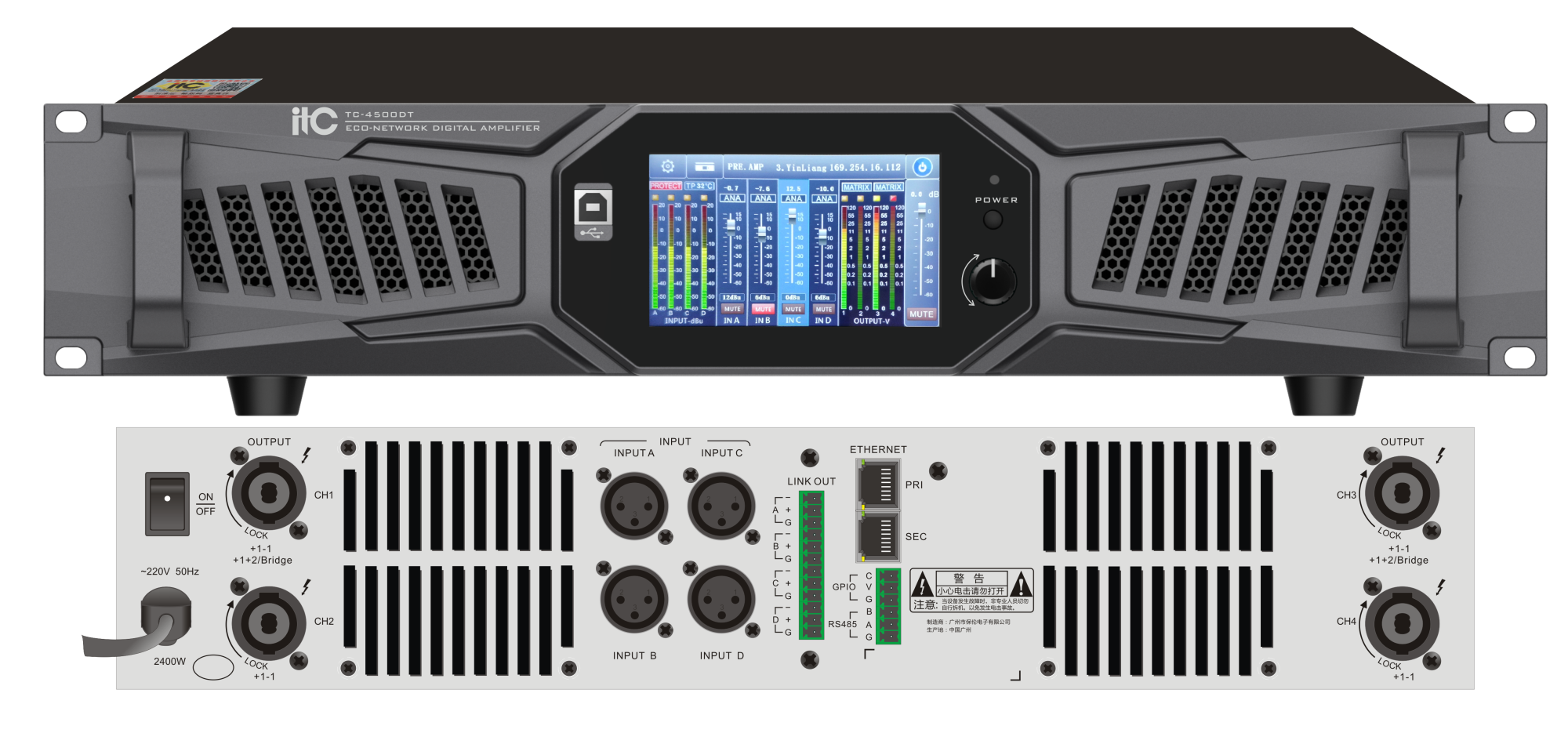 ITC-4500DT Dante усилитель, 4-канальный 8 Ом*4: 500 Вт